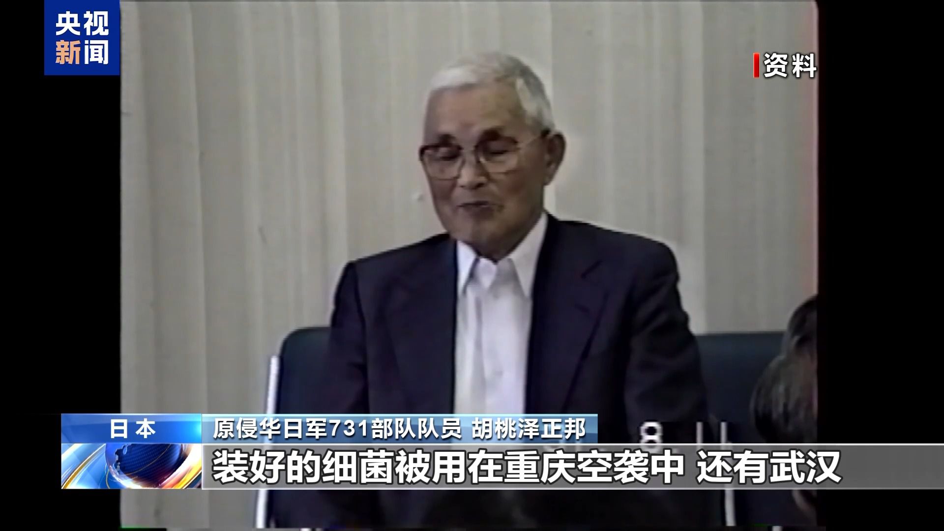 原侵华日军731部队队员 胡桃泽正邦:所谓“马路大”就是人,我们称作俘虏,用这些“马路大”来做人体实验。我做的记录在案的人体解剖实验就有300人。不是所有的解剖物都需要保存,约三分之一会保存在福尔马林中,剩余的全部烧毁。后来在空袭前,一天就能生产两吨细菌,细菌是生物,没有一定营养就会死掉,所以生产后的细菌像火药一样装好,并且必须马上使用。装好的细菌被用在重庆空袭中,还有武汉。