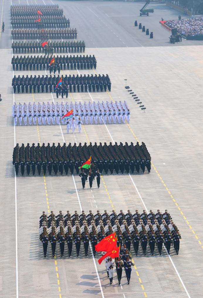 9月3日,纪念中国人民抗日战争暨世界反法西斯战争胜利80周年大会在北京隆重举行。这是徒步方队接受检阅。新华社记者 刘续 摄