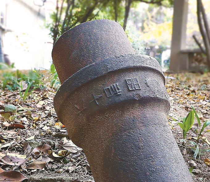 带有“昭和十六”铭文的铸铁管。赵亚玲 摄