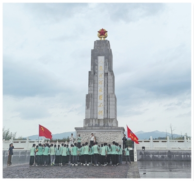 学生在于都烈士纪念园的革命烈士纪念碑前开展纪念活动。本报记者 杨颜菲摄