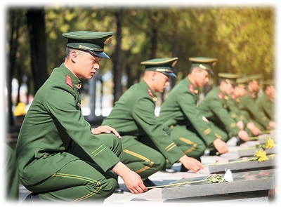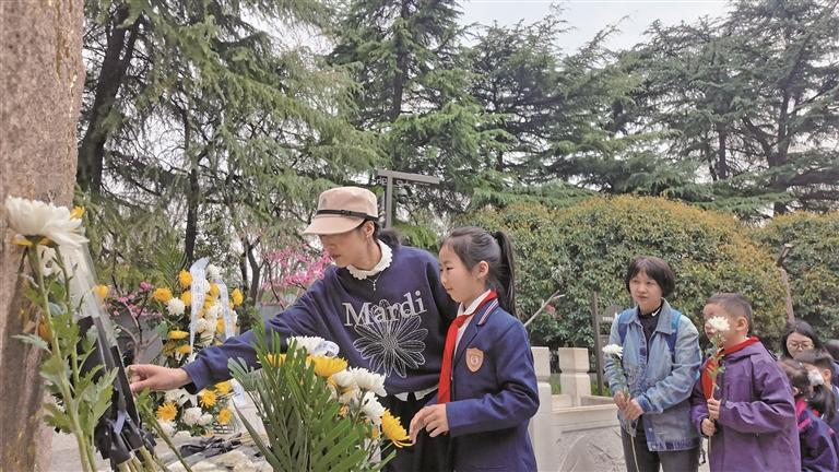 4月2日,学生在天津市滨海新区塘沽烈士陵园缅怀先烈。