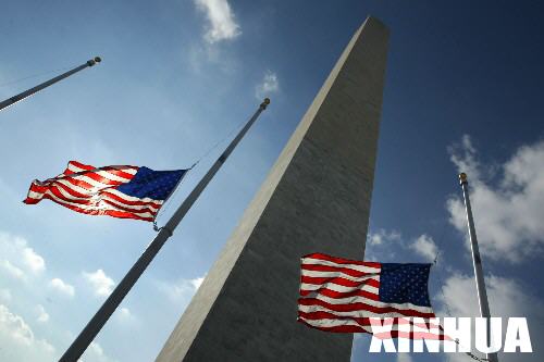 2005年12月7日,华盛顿国家大广场上的美国国旗降半旗,以纪念珍珠港事件64周年。新华社记者吕明响摄