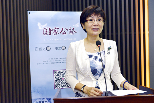 9月2日,国家公祭网手机客户端上线仪式在侵华日军南京大屠杀遇难同胞纪念馆举行。图为南京市委常委、宣传部部长徐宁主持上线仪式。
