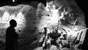 九一八历史博物馆里,一名观众在《义勇军进行曲》浮雕前驻足。华商晨报 华商响网记者 蔡敏强 摄