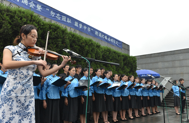 9月18日上午,“勿忘九一八”南京青少年诗歌朗诵会暨“勿忘国耻 圆梦中华”朗诵比赛在侵华日军南京大屠杀遇难同胞纪念馆悼念广场举行。图为朗诵比赛现场。
