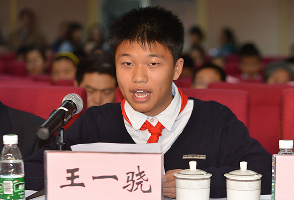 南京外国语学校学生代表王一骁发言