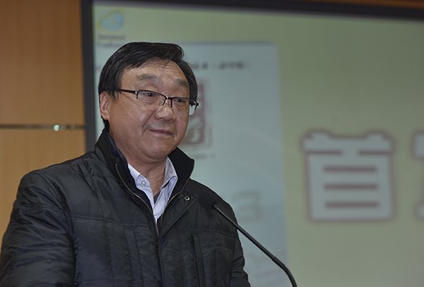 12月1日下午,《南京大屠杀死难者国家公祭读本》(高中版)首发式在南京市金陵中学举行。图为江苏省委外宣办副主任、侵华日军南京大屠杀遇难同胞纪念馆馆长朱成山讲话。应康伟摄