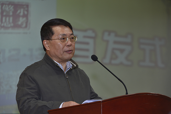 12月1日下午,《南京大屠杀死难者国家公祭读本》(高中版)首发式在南京市金陵中学举行。图为南京市教育局局长吴晓茅讲话。应康伟摄