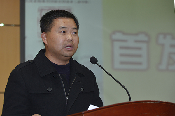 12月1日下午,《南京大屠杀死难者国家公祭读本》(高中版)首发式在南京市金陵中学举行。图为南京市金陵中学教师代表赵巧林发言。应康伟摄