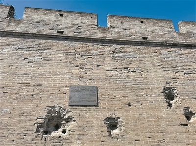 宛平城城墙上的弹坑遗迹。赵婉姝摄