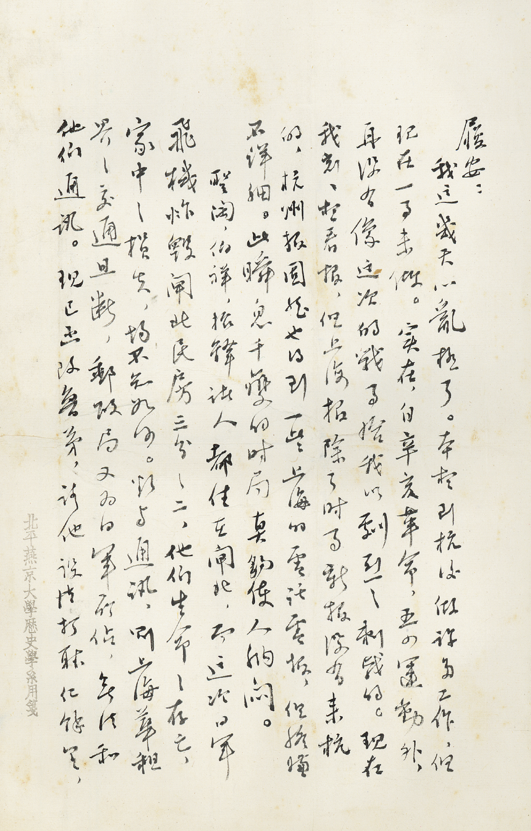 而当父母对话之时,“父亲说一句话”,继母“她总用训责的口气答之,呼斥与仆人一例”,顾颉刚作为旁观者,相形之下,对殷履安颇有感触地说,“想起了你的待我,更增我伉俪之情”。其实,顾颉刚一生有三任妻子,首任为吴徵兰,次任为殷履安,三任为张静秋,此外还有一位可望而不可即的红颜知己谭慕愚,情感世界可谓相当丰富,容易给人一种“滥情”之感,于是坊间相传顾颉刚为人颇自私,三任妻子都是为了照顾自己生活起居而已。但据家书来看,顾颉刚对殷履安是诚挚的。如殷履安患有耳疾,时不时地需要就医,顾颉刚始终记挂着,并在多通家书之内表示关切,“我到庆馀堂买药时,当在牌子上细看一过,有无相当之药”(第64通,1932年4月26日)。战时夫妻分居两地,别愁离恨,眠思梦想,顾颉刚对殷履安说,“昨天夜里,我又梦回平了。下车之后,即雇车到大石作,那时你已睡了,我就坐在床上和你谈话,一只手伸在被窝里抚摩你的身体。忽然醒来,只有叹一口气”(第51通,1932年4月5—6日)。而顾颉刚期待殷履安相从已久,但殷履安认为,“你我多在安全地带,能不动最是好的”,并劝慰顾颉刚,“请你不要怨恨我,这是战事的赐与,没有法子啊”(第105通,1937年12月19日)。在此之前,顾颉刚也曾经问过,“履安,我何尝不想早回来,在此间冰清清的,何如在你跟前热络络的。只是父亲既不放心我走,我也不放心杭州的治安,又是为几篇文债逼了几年,一回北平实无法做,故不得不忍心离开你耳。你要恨我吗”(第26通,1932年3月1日)。而事实上,殷履安对顾颉刚是“不应有恨”。