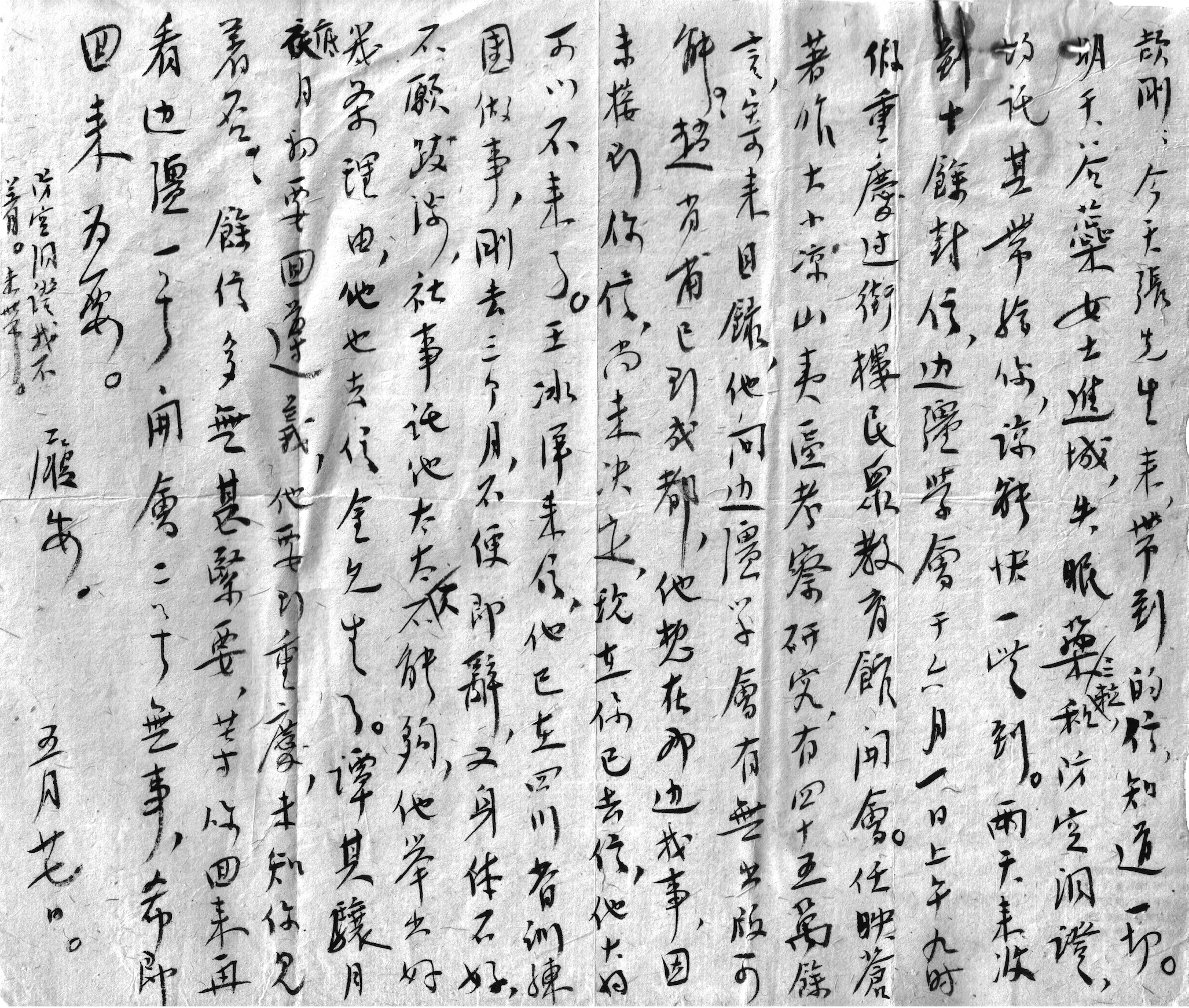 “颉刚留所日少,离所日多,又常去重庆”,久滞不归,“其家暂留园中,随亦接去”(钱穆《八十忆双亲·师友杂忆》,第230页),居于柏溪。1943年5月30日,殷履安因染上恶性疟疾,突然离世。数日之后,顾颉刚在去函上题注道,“此为我与履安之最后一书,廿七日渠接此书尚到予办公室寻觅防空证,至廿八日而疾作,三十日而长逝矣,痛哉”(第193通,1943年5月26日),又在日记之中写道,“徵兰之殁,予仅哭两次,一气绝,一入殓耳。独至履安,则一思念辄泪下,今日又哭出,她对我实在太忠心了,叫我如何不想她”(《顾颉刚日记》,1943年7月27日),足见“他对履安也怀着深厚的情感”(《顾颉刚日记》余英时序)。且顾颉刚本打算在自传之内专辟一节来写《履安的死》,可惜的是,最终无果。