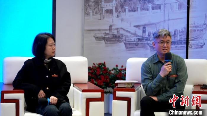 黄埔军校武汉分校六期生赵一曼后人陈红(左)、黄埔一期生左权的外孙沙峰(右)在活动上作分享。李曙 摄