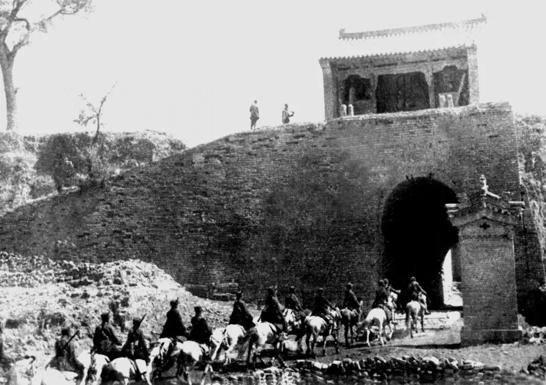 日军在七七事变发生后拍摄的第29军将士在宛平县城上监视日军的照片。照片上可见城墙上弹痕累累,残破不全,显示宛平城刚刚遭受过日军十分猛烈的炮击。新华社发