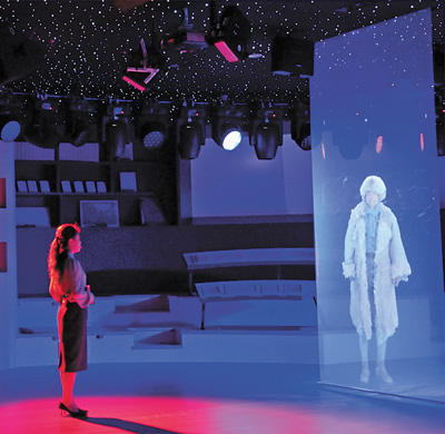 《百日战斗档案 不朽民族气节》授课教师与杨靖宇AI形象隔空对话。 孙晓亮摄