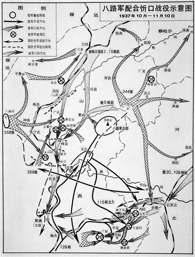 团结抗战的光芒,闪耀在华北前线。1937年9月,日军突破国民党军晋北防线后直趋太原,国民党军退守忻口要隘组织正面防御。八路军各部在敌之翼侧、后方积极作战,配合友军保卫忻口、太原。第115师出击察南、冀西,打击晋东北之敌,切断张家口至代县的敌后方交通线;第120师挺进雁北,威胁大同,切断大同至忻口间的日军交通线;第129师夜袭阳明堡机场,大大削弱忻口当面之敌的空中力量。日军正面进攻难以得逞,另派兵力迂回侧后沿正太铁路西进,以配合其忻口正面部队夺取太原。八路军主力火速南下,赶往晋东娘子关附近阻击、迟滞进犯之敌,连续取得长生口、七亘村、黄崖底、广阳伏击战的胜利。尽管太原最终失陷,但中国军队英勇作战,毙伤日军共2万余人,书写了国共两党两军在战役战斗上协同抗敌的典范。