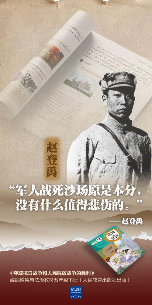 “全民族,各阶级,团结起,夺回我河山”“未惜头颅新故国,甘将热血沃中华”“军人战死沙场原是本分,没有什么值得悲伤的”……1945年8月15日,日本无条件投降。80年后的今天,让我们跟着课本,一起缅怀抗日英雄,重温他们震天撼地的壮烈事迹。