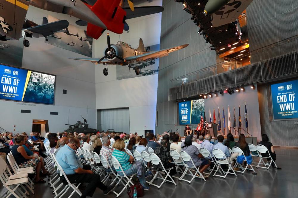 8月14日,在美国路易斯安那州新奥尔良市国家二战博物馆举行的二战结束80周年纪念仪式现场。魏兰摄