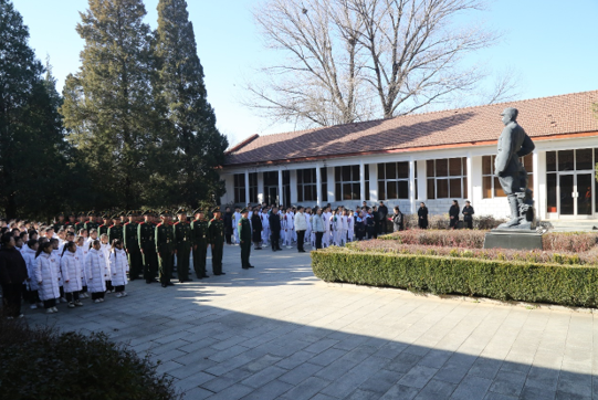 12月1日,阜平县迎来了一群来自北京八一学校金帆合唱团的学生。为纪念首颗原子弹爆炸成功60周年,北京市八一学校金帆合唱团参观了聂荣臻小学故址和晋察冀边区革命纪念馆,并与阜平马兰花儿童声合唱团及驻地武警官兵携手合唱,共同唱响了《强军战歌》和《强国有我》两首激昂的歌曲。广大师生还和武警官兵一起向聂荣臻元帅雕像敬献了花篮,并表达了继承革命先辈遗志的誓言。