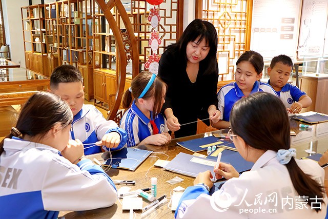 课堂角落,六年级的桑德格正对着一本线装书“下功夫”,穿针、引线、打结……一本四眼线装书就这样完成了。经过一个学期学习,他已经从“连古籍部件都认不全”的新手,成长为能独立完成线装书制作的“小师傅”,更将“修复文物、传承文化”的志向融入未来规划,“我将来要当历史科学家,造厉害的机器修复文物!”谈及课程,桑德格眼里闪着光,“这门课有很多动手环节,每次完成作品,我都特别自豪。”这生动的一幕,正是该校以古籍修复课程为载体,创新思政教育、传承中华优秀传统文化的缩影。