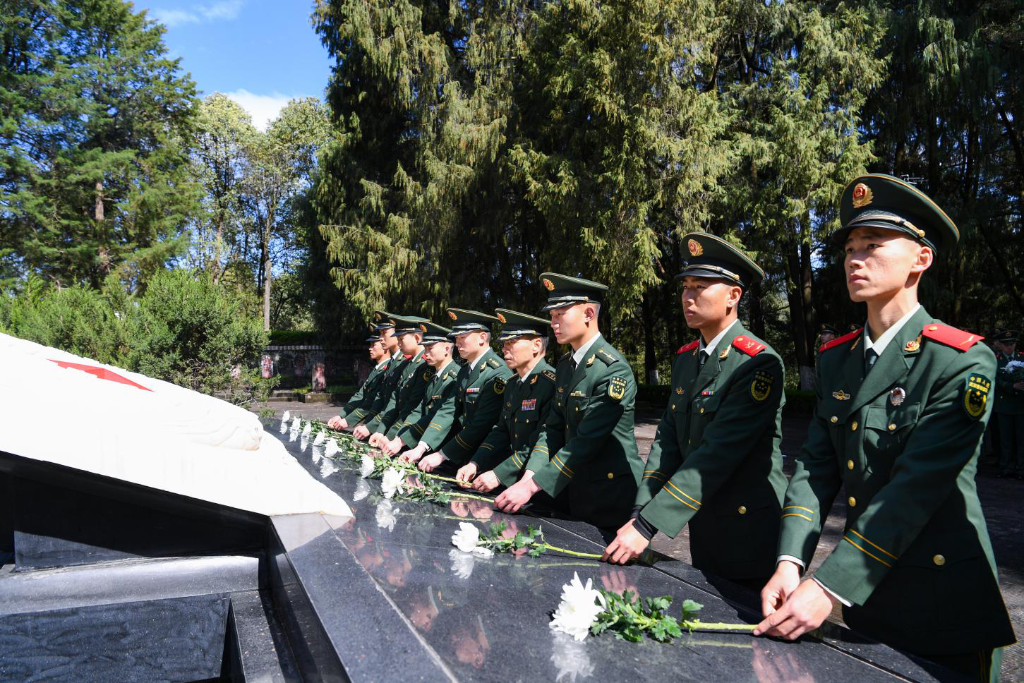 武警四川总队巴中支队官兵到川陕革命根据地红军烈士陵园缅怀红军英烈。王百越 摄