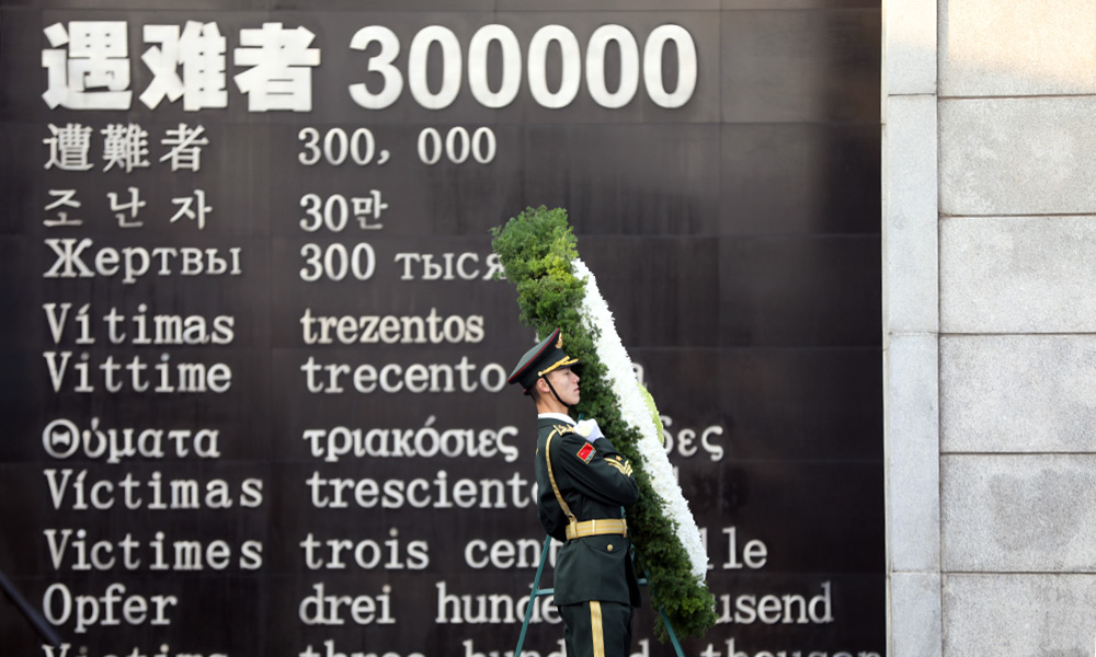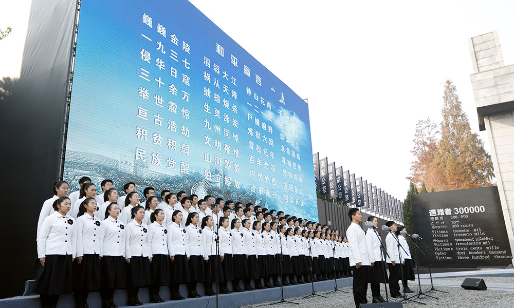 位于纪念馆南面的遇难者名单墙俗称“哭墙”,1995年初刚设立时,刻有姓名3000个,象征被日军屠杀的30万同胞。